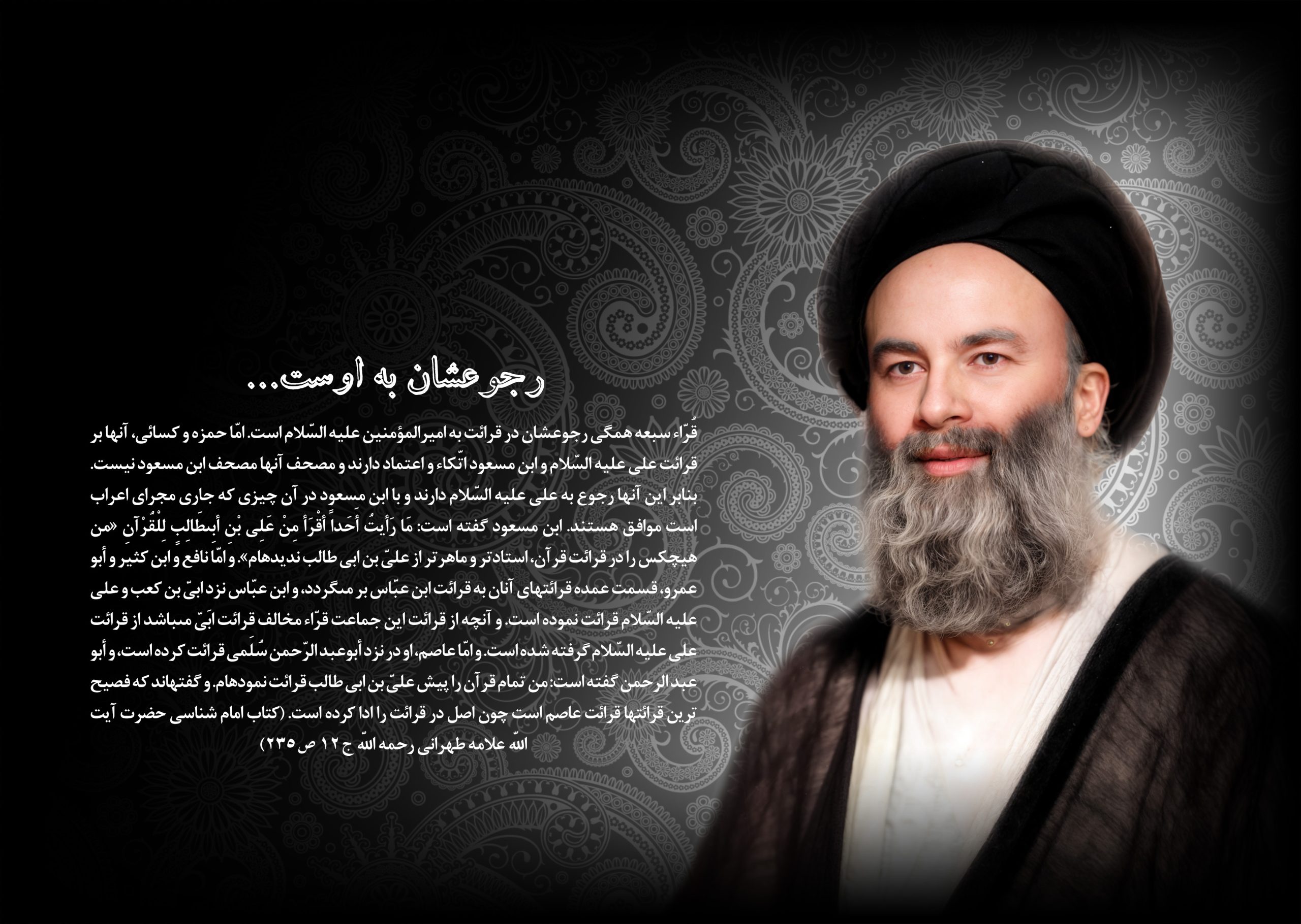 قُرّاء سبعه همگى رجوعشان در قرائت به اميرالمؤمنين عليه السّلام است. امّا حمزه و كسائى، آنها بر قرائت على عليه السّلام و ابن مسعود اتّكاء و اعتماد دارند و مصحف آنها مصحف ابن مسعود نيست. بنابر اين آنها رجوع به على عليه السّلام دارند و با ابن مسعود در آن چيزى كه جارى مجراى اعراب است موافق هستند. ابن مسعود گفته است: مَا رَأيتُ أَحَداً أقْرَأ مِنْ عَلِى بْنِ أبِىطَالِبٍ لِلْقُرْآنِ «من هيچكس را در قرائت قرآن، استادتر و ماهرتر از علىّ بن ابى طالب نديدهام». و امّا نافع و ابن كثير و أبو عمرو، قسمت عمده قرائتهاى آنان به قرائت ابن عبّاس بر مىگردد، و ابن عبّاس نزد ابىّ بن كعب و على عليه السّلام قرائت نموده است. و آنچه از قرائت اين جماعت قرّاء مخالف قرائت ابَىّ مىباشد از قرائت على عليه السّلام گرفته شده است. و امّا عاصم، او در نزد أبوعبد الرّحمن سُلَمى قرائت كرده است، و أبو عبد الرحمن گفته است: من تمام قرآن را پيش علىّ بن ابى طالب قرائت نمودهام. و گفتهاند كه فصيحترين قرائتها قرائت عاصم است چون اصل در قرائت را ادا كرده است. (کتاب امام شناسی حضرت آیت الله علامه طهرانی رحمه الله ج ۱۲ ص ۲۳۵)